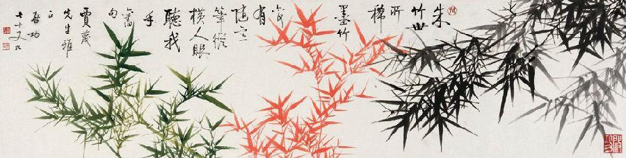 朱竹世所稀,墨竹亦何有。随意笔纵横,人眼听我手。